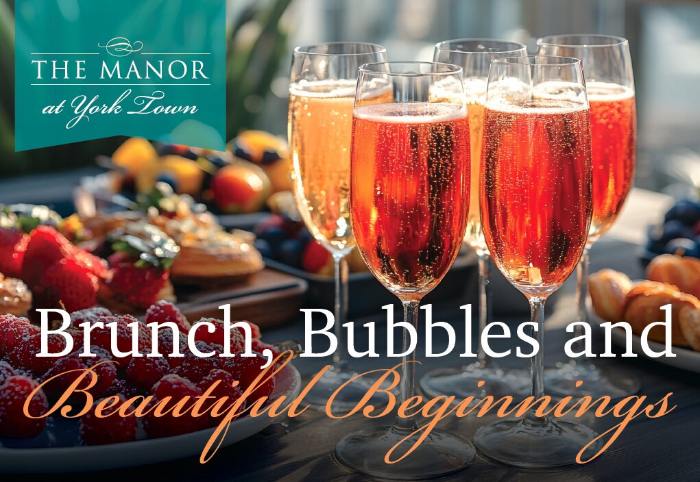 Join us for an elegant champagne brunch and tour at The Manor at York Town! Savor a delicious selection of chef-prepared treats while enjoying live musical entertainment on our beautiful garden patio. Mingle with friendly residents and staff, who will be happy to share insights about our vibrant community and exceptional lifestyle.